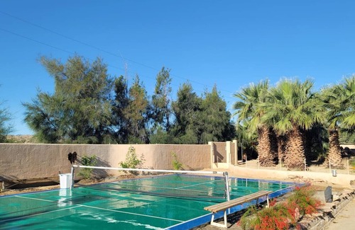 This home is located in the heart of the beautiful Sky Valley Desert just a few minutes from the Coachella Valley Preserve. A perfect place to relax as it is a quieter community with no traffic noise or other disturbances, serenity of the mountains, natural desert scapes and at night sky filled with stars. Yes, star gazing is great from this property. Get your family or friends together and come to decompress and find peace and happiness here in the desert. We offer pool floaties, corn hole, indoor board games, billiards etc. If yoga mats required, inquire with us prior. Garage is not accessible at this time. Also, please let us know if you need anything else to make your stay splendid.