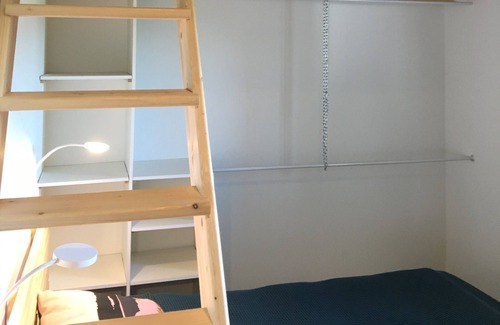 Prepare a home-cooked meal in the kitchen, complete with an oven, a stovetop, and a refrigerator, as well as a coffee maker, a microwave, and cookware. And there is a laundromat nearby so you can pack a bit lighter. Other amenities include a dining area and bed sheets.