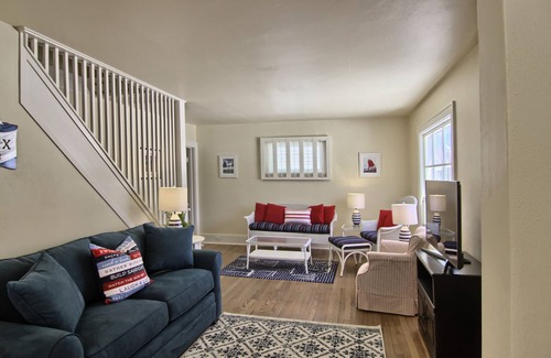 The cozy downstairs of your home away from home features a living room, dining room which can accommodate 8, and a fully equipped kitchen. Attached to the kitchen is a "mudroom" leading to the large, fully fenced backyard including a patio with a table and chairs and a barbeque grill. The first floor features a bedroom (Queen ) and an ensuite full bath. Upstairs features a twin bed room and queen bedroom joined by a full bath. We have tried to include anything you might need to stay and feel at home.