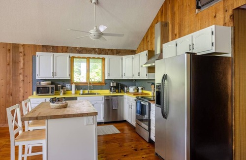 * Four bedrooms (bedroom 1: queen, bedroom 2: queen, bedroom 3: twin-over-twin bunk), and bedroom 4 in the loft: pull-out full futon couch.