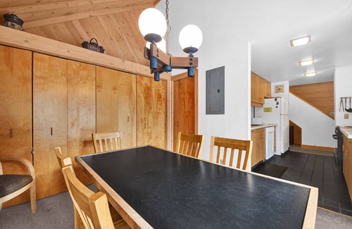 This classic cabin style home has an open concept Living room, Kitchen, and Dining room space. You will stay warm and toasty thanks to the nice fireplace while watching your favorite TV show or movie, especially on the new flat-screen TV in the living room. Relax on the deck off of the living room or in the new hot tub and enjoy the excellent view of the South Golf Course in this classic Sunriver home. Shopping, bike trails, and SHARC just a short distance from your home.
