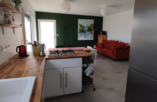 Single-storey wooden house between Goulien beach and Crozon market town is located in Crozon. Single-storey wooden house between Goulien beach and Crozon market town provides accommodation, featuring Security/Safety, Wellness Facilities, Fireplace/Heating, among other amenities. This House features Security/Safety, Wellness Facilities, Fireplace/Heating, to make your stay a comfortable one.