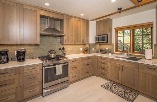 Newly Renovated Kitchen | Keurig Machine | Toaster | Ice Maker | Additional Beverage Refrigerator | Electric Griddle | Blender | Bakeware | Tea Kettle | Crockpot | Hand Mixer | Cooking Utensils | Basic Spices | Dishwasher | Microwave | Gas Range | Fridge | Freezer