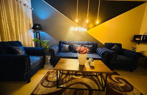 Experience Rawalpindi like a local in this welcoming 1-bedroom apartment. The space features luxury selfie wall and a king size bed , bathroom with electric geyser, Want to cook? We got you covered, stove , fridge ,microwave and basic amenities included. Cleaning provided , 24/7 food and pharmacy delivery available. 5 mins drive to commercial hub and 10 min drive to famous local/international restaurants. Watchman 24/7 available.Free parking space and fast internet. Smart TV (Netflix) available. Private balcony and a skyline view. Family friendly space.