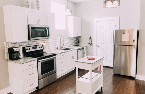 Our newly renovated building has four apartments, and you will have access to all four of them! Two are on the first floor and two are on the second floor, and do require stairs. Each apartment has two bedrooms, a full bath, fully furnished kitchen, and plenty of living area. They are not connected, but literally steps away from each other. We are conveniently located near restaurants, shops, bars, Cincinnati, The Ark Encounter, Creation Museum, Newport Aquarium, Reds, Riverbend and so much more!
