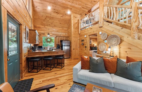 Tastefully decorated with seasonal decor, our cabin blends luxury with traditional by incorporating rich fabrics, rustic tones, and high-tech with mountain pine and stone throughout. You'll enjoy soaking in the large, private hot tub after a long hike or day of sightseeing, dining on the lower deck after preparing a meal in our fully stocked kitchen, or having a glass of wine on the upper deck as you watch for the occasional bear that passes thru. Entertain yourself with a competitive game of pool in the upstairs loft, or by cozying up with a good book or movie next to the stone fireplace.