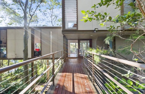 Nestled within rocky outcrops and native gum tress overlooking the entrance to the Brisbane Waters, this ecologically designed retreat boasts a serene bush and bay outlook surrounded by Bouddi National Park. An easy walk to many of the secluded beaches and bays of the Bouddi/Killcare Peninsula, you will not be short of activities. Pop down to the general store for a burger, catch the Palm Beach Ferry or have a hit of tennis.