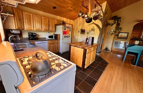 Our home features a family-friendly open floor plan with vaulted ceilings, maple and pine flooring, hickory cabinets and decorative touches that help to bring the beauty of our surroundings in. An outdoor family-friendly play area with swings, small lawn, a sandbox with toys included, a short bike path featuring a small wooden bridge, and a wood chip area with stumps for active free play truly make this the perfect place for a family with young children. Our end-of-the-road location makes it the perfect place for a quiet getaway to experience the majesty of what Montana has to offer. Public access to the North Fork Flathead river is a short mile drive away. Access to Glacier National Park through either the West Glacier entrance or the Camas entrance are both a 20 minute drive away. With a lively local Farmer's Market on Thursday evenings, Columbia Falls is a great stop for a taste of what the Flathead Valley has to offer.