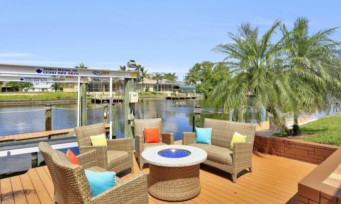 There is also an additional lounging with 2 outdoor lounge chairs; an ideal spot to enjoy a cocktail at sundown! With outdoor waterfront living and relaxation so high on the priority list in sunny Cape Coral, the home is also equipped with a gas barbecue. The lushly landscaped grounds and private dock area with separate seating area and gas fire pit are the finishing touch to your own piece of paradise that Florida is famous for and provides privacy and a feeling of tropical tranquility.