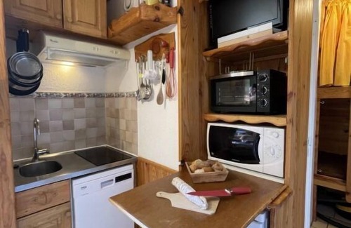 1-room studio 17 m2 on 4th floor, south facing position. Simple furnishings: living/sleeping room with 1 bed (120 cm, length 190 cm), TV (flat screen). Entrance hall with 1 bed (80 cm, length 190 cm). Kitchenette (mini-oven, dishwasher, 2 ceramic glass hob hotplates, toaster, microwave, electric coffee machine, raclette grill). Bath/WC. Electric heating. View of the mountains and the ski run. Facilities: hair dryer. Internet (WiFi, extra). Please note: non-smokers only. 1 small pet/ dog allowed. Smoke alarm. Offer by a private individual according to Art. 155, IV of CGI. FR7370.100.92