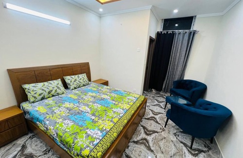 "Welcome to our cozy guest house located in Faisal Town, Islamabad. Conveniently situated near Islamabad International Airport and motorways M1 and M2, our guest house offers easy access for travelers. With comfortable accommodations and excellent amenities, we strive to provide a memorable stay for our guests. Experience warm hospitality and a convenient location at our guest house in Islamabad."