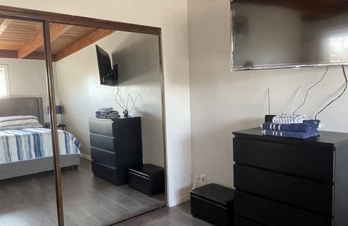 Enjoy this Beautiful Back Guest House conveniently located in a quiet neighborhood. WiFi, Full kitchen w/utensils, open floor plan, hardwood floors, patio & Driveway parking. Home includes TV in living room & Bedroom, sofa & Dining room Table. This home is ideal for Filming TV Interviews, family vacations, business trips, or solo adventure! LAX: 11 miles, Long Beach Airport: 17mi, Staples Center: 12 mi, Sofi Stadium: 9 mi Knott’s Berry Farm: 19 mi Disneyland: 24 mi The Beach: 16 mi Hollywood: 20 mi!