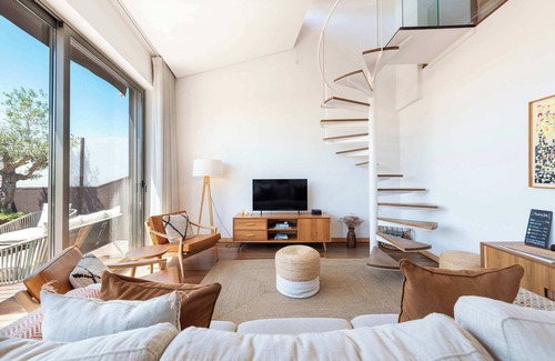 The Alves da Veiga Rooftop is located in downtown Porto, just 2min away from Mercado do Bolhão. It’s a 200sqm loft with 2 bedrooms (one upstairs and one downstairs), 2 bathrooms (both downstairs), a spacious terrace and 2 balconies. It's full of light and space for up to 4 people.