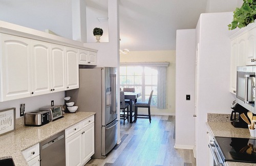This home features a complete Master Suite including a Smart TV with a private bath with access to pool area. Enjoy the pool view from the Large living room and secondary living room. The Spare King bedroom with a Smart TV and spare 2 Queen bedroom with Smart TV shares a bathroom. This split floor plan offers privacy for all quest for the perfect getaway!