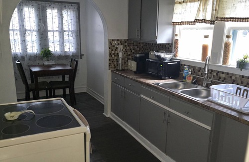 Stay comfortably in Lorain at this 5-bedroom house. This tranquil retreat offers 3 queen beds, 3 twin beds, and 1 full bed, perfect for families or groups. With 3 bathrooms equipped with a shower, bathtub, and hair dryer, guests will feel right at home. The living room with a cozy futon provides extra space to relax. It's easy to see why you'll be able to unwind at our place.