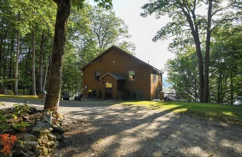 NEW FOR 2026! This spacious five-bedroom home in Bridgton, Maine, sits above Long Lake and offers beautiful elevated views of the water. Inside, a mix of rustic, vintage, and antique touches gives the home character and a comfortable feel. Enjoy sunrises from the window-side dining table, the deck, or your private dock. A stairway leads down to the lake, where there’s deep-water access from the dock and a gentle sandy entry from the steps.