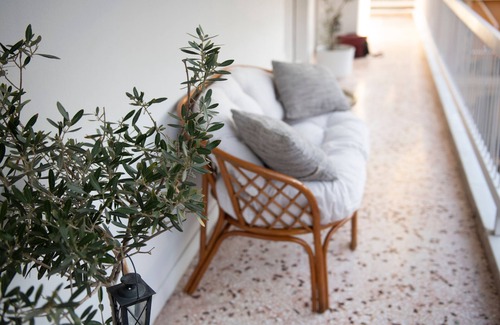 Modern and artistic with Greek ancient touches and urban decoration, two-bedroom sunny apartment, 10 minutes from city center, castle area and main attractions. Spacious and recently renovated, fully equipped with all sorts of appliances, fresh towels and sheets, shampoo and comforts. High quality mattresses, pillows, blankets and a king size bed, big leather couch and closet, coffee, tea, spices, and high-quality pots and dishes for a pleasant cooking. A 42” TV with a home cinema installation, provides NETFLIX, HBO MAX, DISNEY+ and PRIME VIDEO platform services as well as a fast optical fiber Wi-Fi connection for fast streaming and safe zoom meetings.