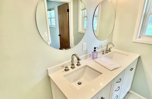 Consider this house your home away from home while you visit one of the bountiful experiences Clarksville has to offer. This charming property boasts 4 bedrooms, including 2 BRAND NEW LUXURY queen beds, Egyptian cotton sheets with spare linens available, 4 twin beds located in bedroom#3, and double stacked queen airbed in room #4 (and plenty of room for more!)and fold flat couch perfect for a comfortable stay for any larger or small group. With amenities like fast and reliable 100mbps WiFi, full-size kitchen furnished with everything including Keurig, Kcup coffee, climate-controlled heating/AC, a washing machine and dryer, an iron, HUGE private backyard with COMFY patio seating, you'll have everything you need at your fingertips. The 2 large bathrooms offer a clean and bright bathtub/shower, double quartz vanities with luxury towels, eco toilets with double or single flushes, and stocked with shampoo, conditioner, and body wash for your convenience. Experience what Clarksville has to offer with a stay at our gorgeous house.