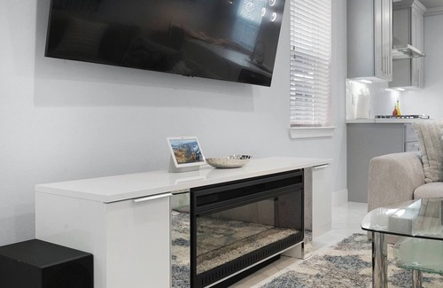 • Living Room: Couch, 75" Smart TV, Speaker System