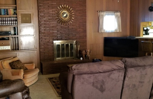 This spacious mid-century house is a perfect location for multiple guests to stay for local weddings and other events, great also for hunters as well as folks traveling for work or lake outings. Enjoy complimentary Wifi and access to a washer and dryer. Situated in a quiet neighborhood with ample parking. Sleeps 6 in 3 bedrooms, or you can request up to 3 twin air mattresses for extra sleeping space.
