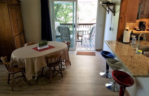 For your grilling pleasure, a BBQ with propane is located on the deck right off the kitchen and family room. You can enjoy your meal using the the patio furniture on the deck, nestled among the oak trees .