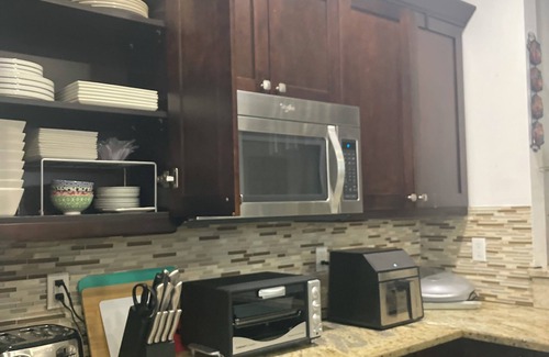 Make yourself at home in this delightful spacious air-conditioned Living in Paradise vacation home, sets in a in 2,652ft² . Can host up to 13 guest in the 5 bedrooms 8 beds (1 king, 4 queens, 2 Twin and a sofa bed), 3 bathrooms with walk-in showers, an oval freestanding tub. 2 living rooms sharing the spacious open floor kitchen and dinning area. Enjoy the convenience of amenities like a fitness equipment, AC, WiFi, dryer and washing machine, outdoor BBQ dining area and Hot Tub. A children's playground and a lake is also available steps away from the house. Towels, bed linens, soap and shampoo provided. Plenty free parking at the front and back drive way.