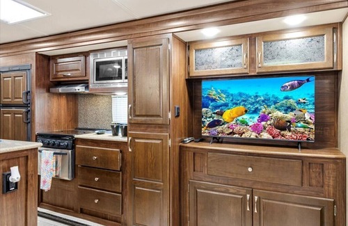 Spacious luxury RV with large kitchen/living room area, private bedroom w/king-size bed, bath and 1/2, with a deck, located in a beautiful RV resort with tons of amenities Min stay is 2 nights w/weekly and monthly discounts Monthly rate is $1,600 is located in Milton. Spacious luxury RV with large kitchen/living room area, private bedroom w/king-size bed, bath and 1/2, with a deck, located in a beautiful RV resort with tons of amenities Min stay is 2 nights w/weekly and monthly discounts Monthly rate is $1,600 provides accommodation, featuring Fireplace/Heating, Entertainment, Barbecue/Outdoor Cooking, among other amenities. This RV Rental features Fireplace/Heating, Entertainment, Barbecue/Outdoor Cooking, to make your stay a comfortable one.