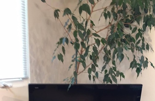 The spacious studio is separate from the main house. It has air conditioning, a full bath and a small utility kitchen. The kitchen comes complete with tableware, microwave, toaster, coffee machine and a refrigerator. There is a large screen TV with access to cable TV. WiFi is also available.