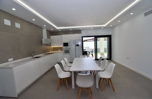 Modern and luxury villa with private pool in Chiclana de la Frontera, Costa de la Luz, Spain for 16 persons. The house is situated in a rural beach area, close to a tennis court and at 4 km from Chiclana. The villa has 6 bedrooms and 3 bathrooms, spread over the main accommodation and a gardenhouse. The vicinity of the beach, places to shop, sports activities, entertainment facilities, places to go out, sights and culture makes this an ideal villa to spend your holidays in Spain with family or friends.