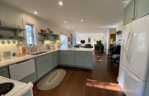 NEW FOR 2024: AIR CONDITIONING! The Summer House at Bayberry Cove is located in the historic seaside community of Pemaquid Trail, adjacent to the entrance of beautiful Pemaquid Beach in New Harbor, Maine. With tranquil ocean views, this lovely 2-bedroom, 1-bath year-round cottage is a perfect longer term rental for a single person or couple who doesn’t want to rough-it on their retreat to Maine. This ‘home away from home’ is filled with luxury touches and conveniences such as a stacked washer/dryer, dishwasher, flatscreen TV, Internet, quartz countertops, and hand-hewn hickory floors, all with a nautical theme for that “cottage” feel. Linens and towels are included in your rental, and the beds will be made up for you.
