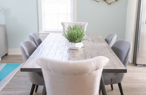 The Salty Dog has 3 bedrooms, each with its own bathroom and a bunk room with 2 sleeper chairs. The home will comfortably accommodate 8 adults. Enjoy the 55" television from anywhere downstairs in this open concept home. The kitchen is masterfully finished with granite countertops and stainless appliances and is well stocked with everything needed to prepare meals for friends and family. The large master suite has a memory foam king size bed, two walk in closets, a tile shower, soaking tub, and double vanity. The other two bedrooms are tastefully furnished and feature queen size memory foam beds and on suite bathrooms. There is a bunk room that has two large foldout sleeper chairs that are perfect for kids and big enough for adults. Enjoy the fenced in outdoor space at The Salty Dog featuring a private deck off the back of the house and a grill deck located in the front yard facing 30a. Laundry facilities are also provided with a front loading washing machine and dryer. In the event you want to rent beach chairs, bikes, paddle boards, or a golf cart to use during your stay, please let us know and we will be happy to arrange it for you.
