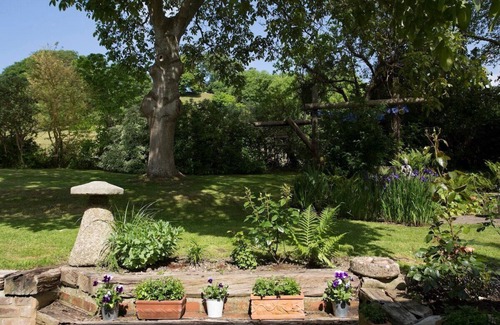 The yurt is pitched in the garden of St Anne's Bed & Breakfast and is an ideal place for a quiet retreat or as a base when visiting Glastonbury (we are situated fairly near a main road so you may be aware of traffic noise from the A361 during the day). At night you may hear owls and during the day the view onto Chalice Hill is beautiful, peaceful, and inhabited only by sheep. In summertime there is a small private secluded sitting area adjacent to the yurt and log cabin with unobstructed view of Chalice Hill, for your exclusive use. Guests can also access the main garden which is a shared space and is shown in our photos with a Buddha statue by the pond.