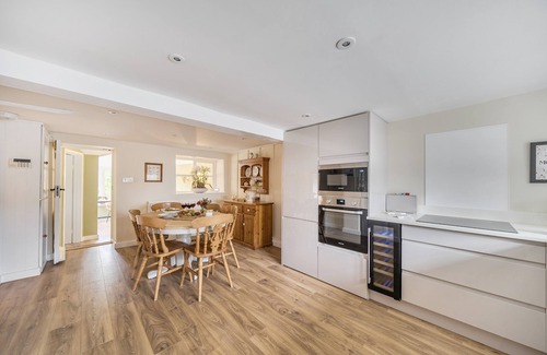 The well-appointed accommodation comprises a double-aspect sitting room with charming and characterful features which include exposed beams, and an inglenook fireplace with wood burning stove, all creating the perfect space for relaxing together.
