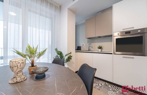 outdoor= 117 smqThe property consists of: entrance hall, a large living area with large windows overlooking the large terrace, an open kitchen custom designed in every detail, a double bedroom with walk-in wardrobe, an elegant bathroom with shower. The property is brand new and stands out for its design furniture with fine materials and finishes. There is ceramic flooring in all rooms with the exception of the bathroom, which is finished in marble. It also features floor heating and air conditioning. Fitness area and co-working area for building guests only.