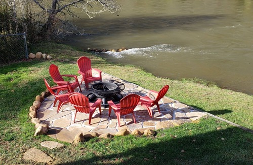 River Haven is a two bedroom, two bath cabin located directly on the Nottely River in Murphy North Carolina. From the screened in porch you look out over the clear flowing river. The riverside patio is a great place to enjoy the firepit when not fishing, tubing, kayaking, hiking, or exploring Murphy and the amazing river walk. Nottely River Winery is only about 6 miles away, and it's beautiful. And lets not forget the Harrah's Cherokee Valley River Casino just 12 miles away.