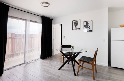 Striking Black & White Apt w Gated Entrance & Yard is located in Desert Hot Springs. Striking Black & White Apt w Gated Entrance & Yard provides accommodation, featuring Air Conditioner, Pet Friendly, Security/Safety, among other amenities. This Apartment features Air Conditioner, Pet Friendly, Security/Safety, to make your stay a comfortable one.