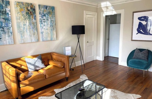 This 2 Bedroom / 1 Bathroom apartment features mid century modern furnishings in a 1920's space. It is perfect for weekend stays and business trips.