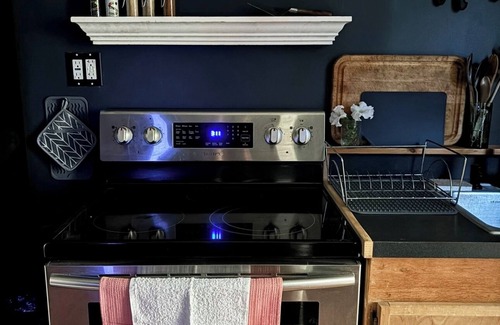 We have been restoring this very cool historic house and are finishing the details up now. More photos will be available soon. Please feel free to reach out with questions. This unique place has a style all its own. Just across the street from the dreams park, "the Gallery" apartment has a private bedroom with a small kitchen and bath, but a large living room that converts to sleep 4 extra people.