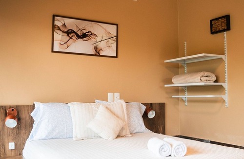 The Studio is large (40m²), comfortable and air-conditioned with a double bed, double sofa bed, balcony with garden view, private bathroom, kitchenette with: refrigerator, stove, microwave, complete private barbecue, coffee maker, as well like kitchen utensils. In addition, it has a 32'' Smart TV and a balcony with a hammock for your rest.