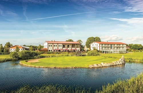 This location is about 30 minutes away from the Baltic Sea beach and offers plenty of opportunities for relaxation and sporting activities. Here you can not only play golf, but also go for a walk in the surrounding woods after a day, go for a ride on the bicycles that can be hired here or use the facilities in the wellness area of the neighbouring hotel (swimming pool, sauna, steam bath, massages). The facilities also include a restaurant where you can savour a meal on the outdoor terrace at sunset.