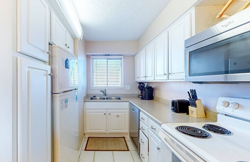 Bring a few friends along and unwind in this gorgeous beachfront condo. With accommodations for eight guests, everyone will be able to spread out and find their own piece of paradise. The private balcony is the perfect spot for sipping a morning cup of coffee or an evening cocktail and the fully equipped kitchen will come in handy when mealtimes come around! When the days heat up, lounging by the shared pool with a cold drink in hand is the way to go. Plus, beach access is just a few steps away as well, so pack a picnic and feel the warm sand on your toes as the tide creeps up the shore. With three TVs and free WiFi, there will be no trouble staying entertained inside as well with a movie!