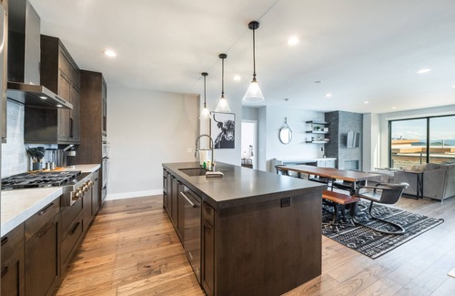 A stunning mountain contemporary masterpiece, this 3 bedroom Klaim luxury townhome sleeping 9 boasts majestic lake and ski slope views, located just on the outskirts of downtown Park City and is perfect for your next ski or summer stay in the mountains!