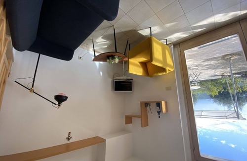 The Casa Chiara vacation home is a 3-room house spread over two levels, covering an area of 75 square meters. The living/dining room features a wood-burning stove, flat-screen TV, and a dining table. The fully equipped kitchen has appliances like an oven, dishwasher, gas stove, toaster, kettle, microwave, freezer, electric coffee machine, and capsules for the coffee machine (Nespresso) at an extra cost. There is also an exit to the terrace and a separate WC on this level. On the upper floor, you will find a double bedroom with an exit to the balcony and a children's room with two beds measuring 90 cm by 200 cm. There is also a bath/bidet/WC on this level.