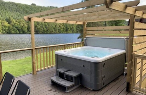 Cosy, comfortable chalet "Lodge 26" in Invergarry, United Kingdom, detached and surrounded by trees, offers a secluded and quiet position near the lake. You can enjoy a private natural garden with a hot tub, terrace, and garden furniture. The property also features a yard and Internet WiFi.