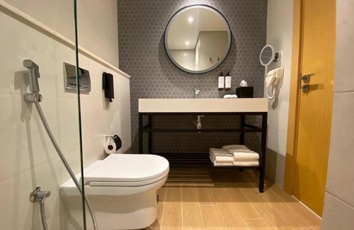 BathroomShower, Hairdryer, Free toiletries, Toilet, Bathtub or shower, Towels, Toilet paper, Shampoo, Conditioner, Body soapMedia & TechnologyTV, Flat-screen TVGeneralAir conditioning, Iron, Carpeted, Tile/Marble floor, Trash cans, Smoke Alarm, Fire extinguisher, Key access, Key card accessKitchenKitchenette, Refrigerator, Microwave, Washing machine, Kitchen, Electric kettle, Kitchenware, Dining tableOutdoorsBalcony, Private pool, Outdoor furniture, Outdoor dining areaLiving AreaSitting area, Sofa, Dining areaViewView, Pool view, City viewBedroomWardrobe or closet, LinensAccessibilityUpper floors accessible by elevator, Accessible by elevatorBuilding CharacteristicsPrivate apartment in buildingPool and SpaPool towels, Shallow endFood & DrinkBottle of waterRoom AmenitiesSocket near the bedPhysical distancingSingle-room AC for guest accommodationCleanliness & disinfectionHand sanitizer |