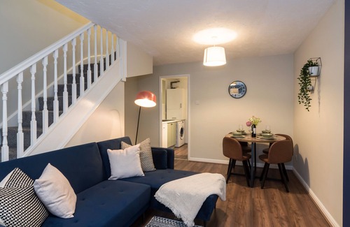 Set in a quiet cul-de-sac, this comfortable, stylish house is a perfect base for business or leisure stays. The kitchen is fully equipped with oven, washing machine, tumble dryer, dishwasher, large fridge freezer, toaster, kettle, microwave and all kitchenware. The living/diner is lovely and bright with a sofa bed, smart tv and dining table and chairs. Upstairs, there are two spacious double bedrooms and a bathroom with bath and shower above. Fast free wi-fi. Parking for more than one vehicle
