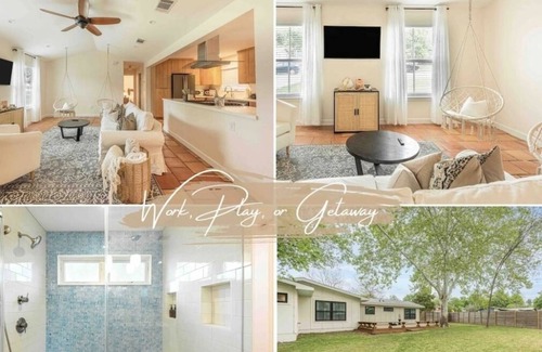 A modern spin on a ranch style home. Staycation, work trip, or family getaway, this spacious home will be perfect for productivity or leisure. Located in North Central Austin, it is only a short distance from The Domain, FC Stadium, The Arboretum and Apple HQ. Nearby highway access the drive to downtown and the rest of the city a breeze. You'll get the whole house to yourself. Self check-in is always a seamless process via smart lock. The house is thoughtfully furnished with high-end furniture. The house includes a full kitchen with all cooking and dining essentials, a smart TV, fast WIFI, and an oversized backyard. We prepare every reservation with fresh linens, stocked towels, and complimentary drinks. The home has an open concept floor plan, boasting 3 bedrooms and 2 full baths (2 queens, 1 king). The Master bedroom has an en-suite bathroom with a spa style feel. We care about our guests and want the space to reflect that. Being that this a newer listing, please feel free to reach out with any questions!