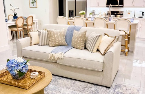 Nestled in Cape Coral, this delightful house offers four bedrooms and three bathrooms, making it a terrific choice for larger groups. The living room with a sofa bed provides additional space for guests to relax. Imagine the tranquil atmosphere you'll experience here, where you can truly unwind and make lasting memories. It's easy to see why you'll be able to unwind at our place. Relax in this bright, beautifully furnished home featuring a private pool, spacious outdoor lounge, and everything you need for a perfect Florida getaway. Enjoy sunny days by the pool, grill out with family.