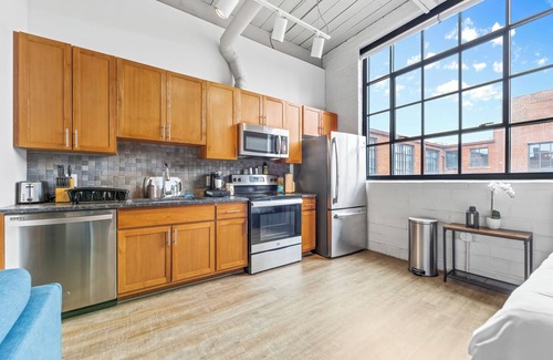 Experience the perfect blend of industrial charm and modern comfort in this upscale one-bedroom condo. Featuring exposed brick walls, sleek industrial-style windows, and an open-concept layout, this space is designed for both relaxation and memory-worthy moments.