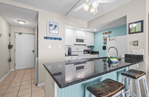 The fully equipped kitchen, featuring granite countertops, has everything you need to prepare delicious meals during your stay. Whether it's a quick breakfast, lunch, or dinner after a day at the beach, this kitchen has all the essentials. Additionally, the condo features a full-sized washer and dryer, allowing you to conveniently keep your beachwear clean and fresh throughout your vacation. Each reservation includes one parking pass good for the duration of your stay. No boats, RVs, or trailers can be parked at Sugar Beach.
